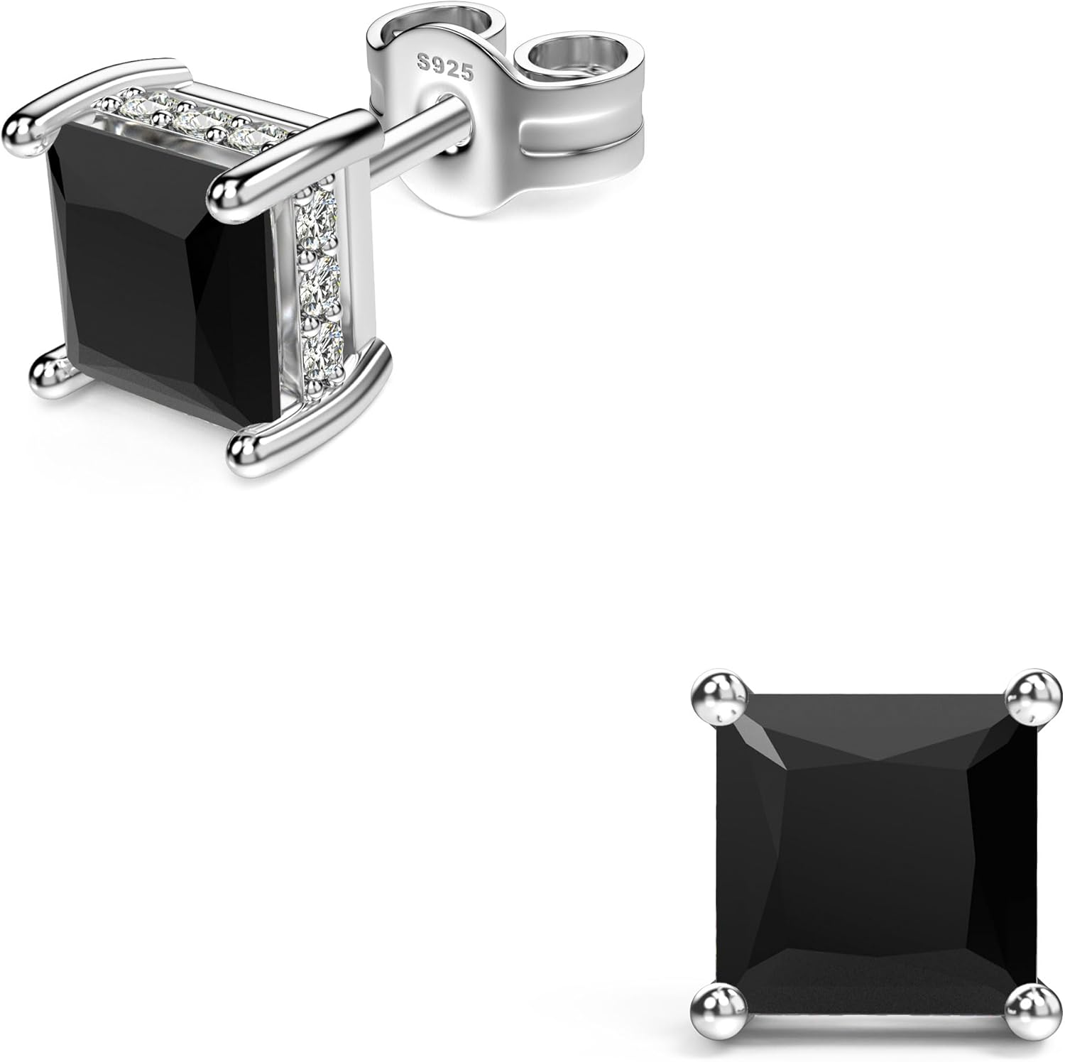 18K White Gold Plated Sterling Silver Princess Cut Cubic Zirconia Stud Earrings Square Simulated Diamond CZ Stud Earrings for Women Men Hypoallergenic
