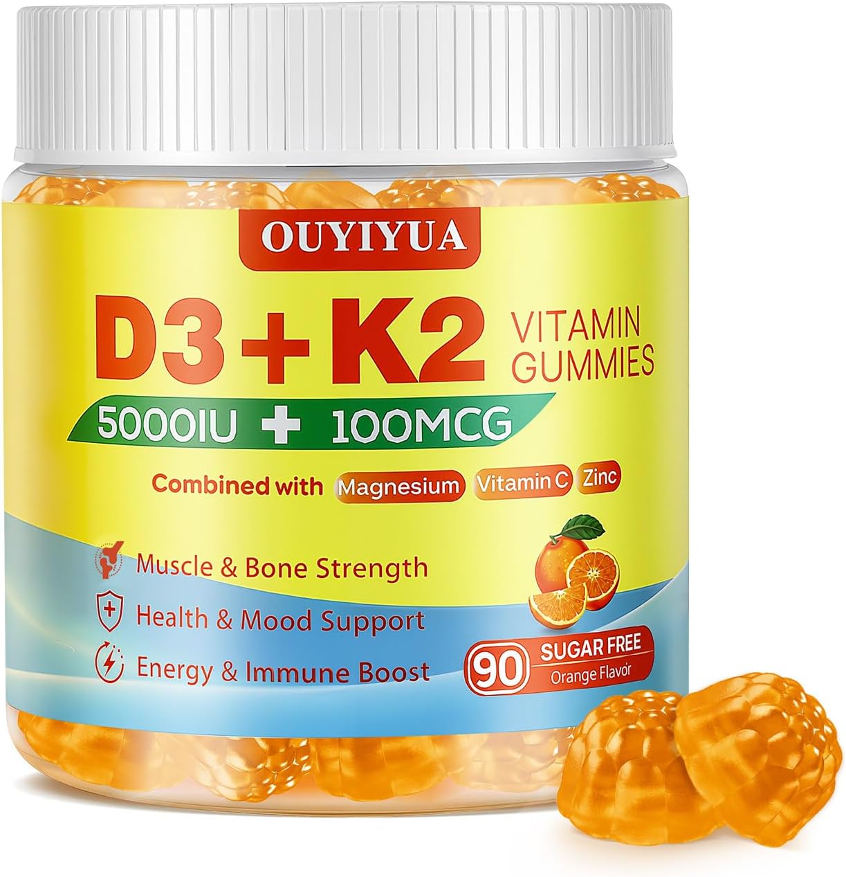 - D3 K2 vitamin 5000 IU Gummies: Our vitamin D3 gummies contains 5000 IU vitamin D3, 100 mcg vitamin K2, 120 mg vitamin C, 20 mg magnesium and 11 mg zinc in each serving, ensuring optimal absorption for enhanced health benefits.