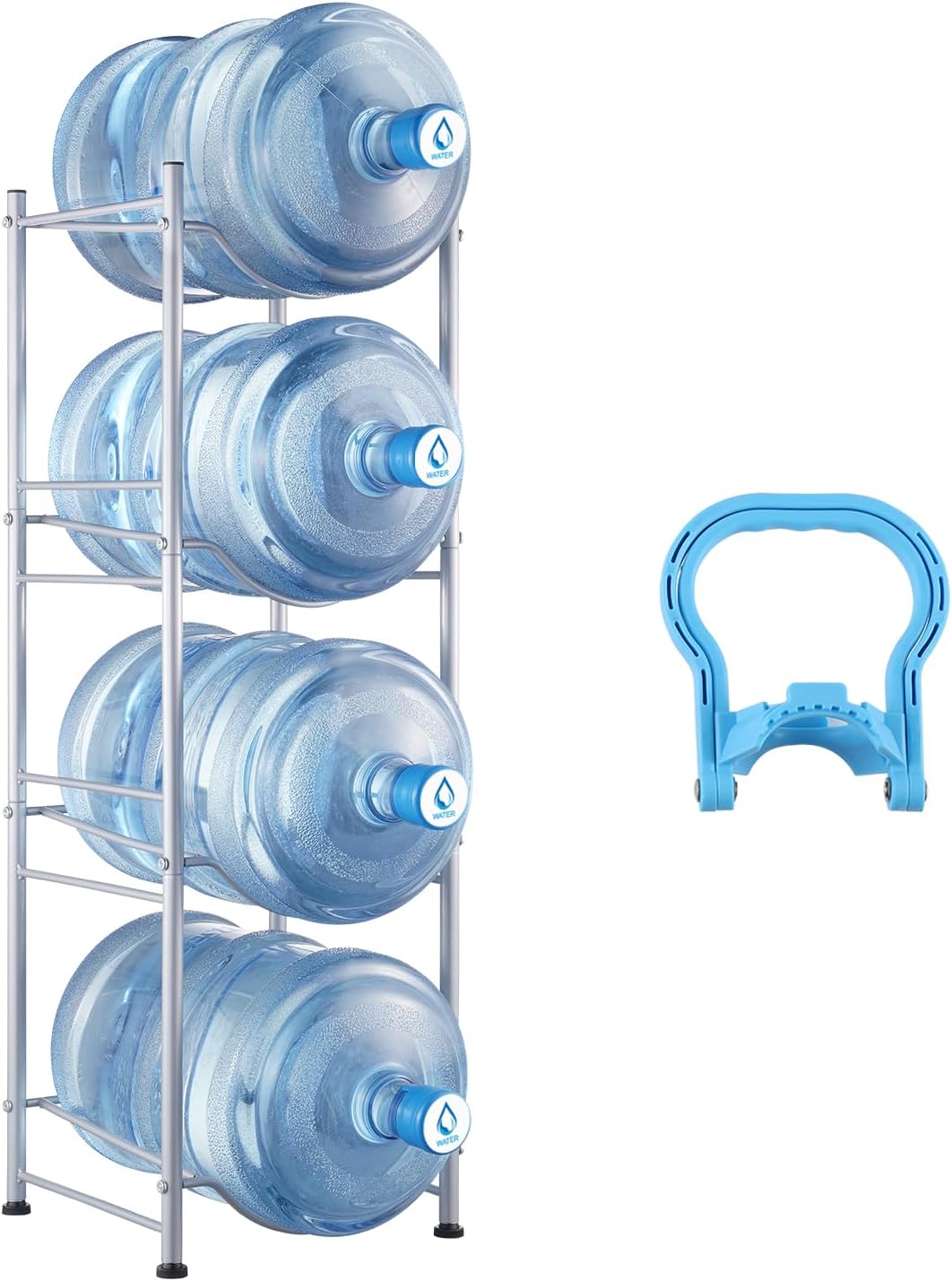 VEVOR 4 Tiers Water Jug Holder, 5 Gallon Water Bottle Holder, Single Row Water Bottle Rack for 4 Bottles, Heavy Duty Water Jug Rack for Kitchen, Office, Living Room, Silver