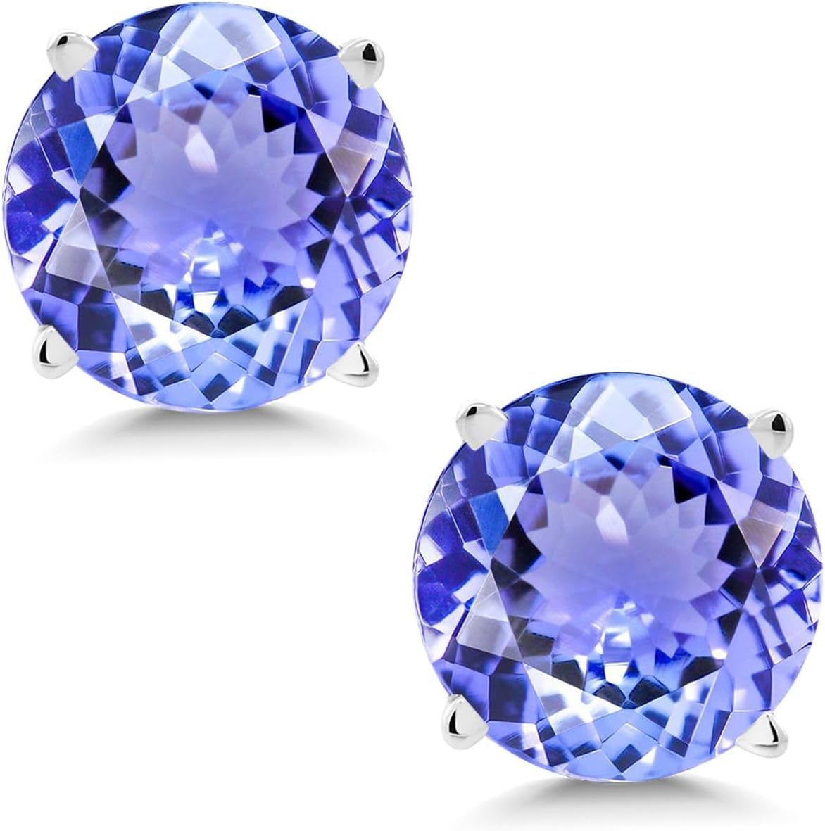 Gem Stone King 14K White Gold Natural Genuine Blue Tanzanite Stud Earrings For Women Men | 1.80 Cttw | Gemstone Birthstone | Round 6MM | Fine Jewelry Gifts for Her Mom Women Wife