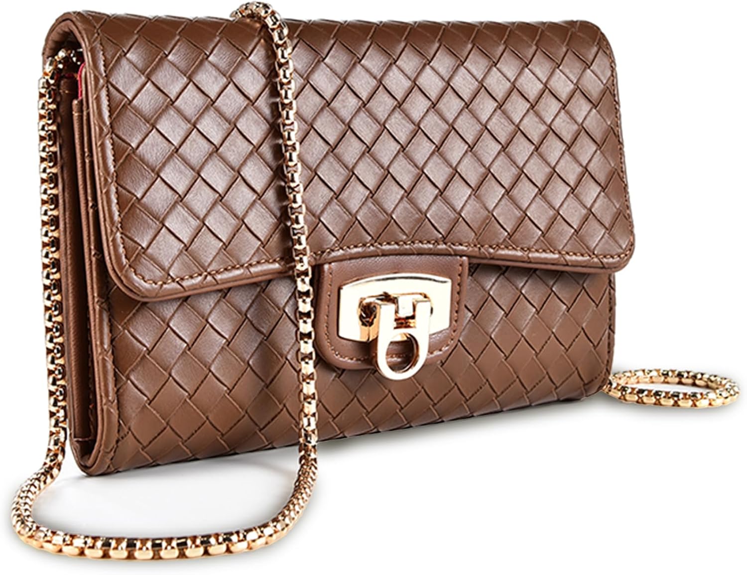 Women's Textured PU Quilted Crossbody Bag - Small Flap Cell Phone Purse with Adjustable Gold Chain Strap