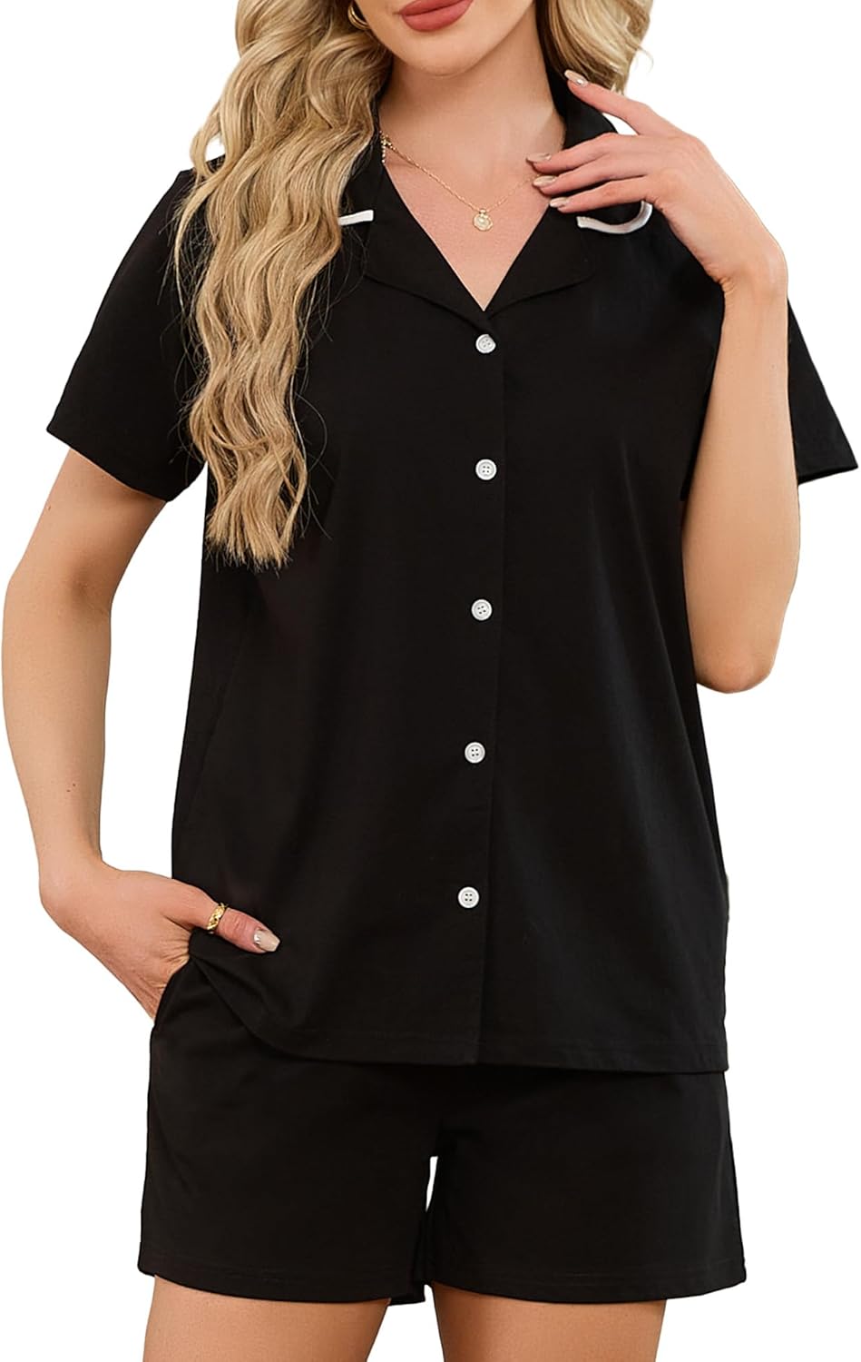 HEARTNICE Short Sleeve Pajamas Set for Women, Button Down Lounge Pjs Shorts with Pockets Sleepwear Summer 2 Piece Soft