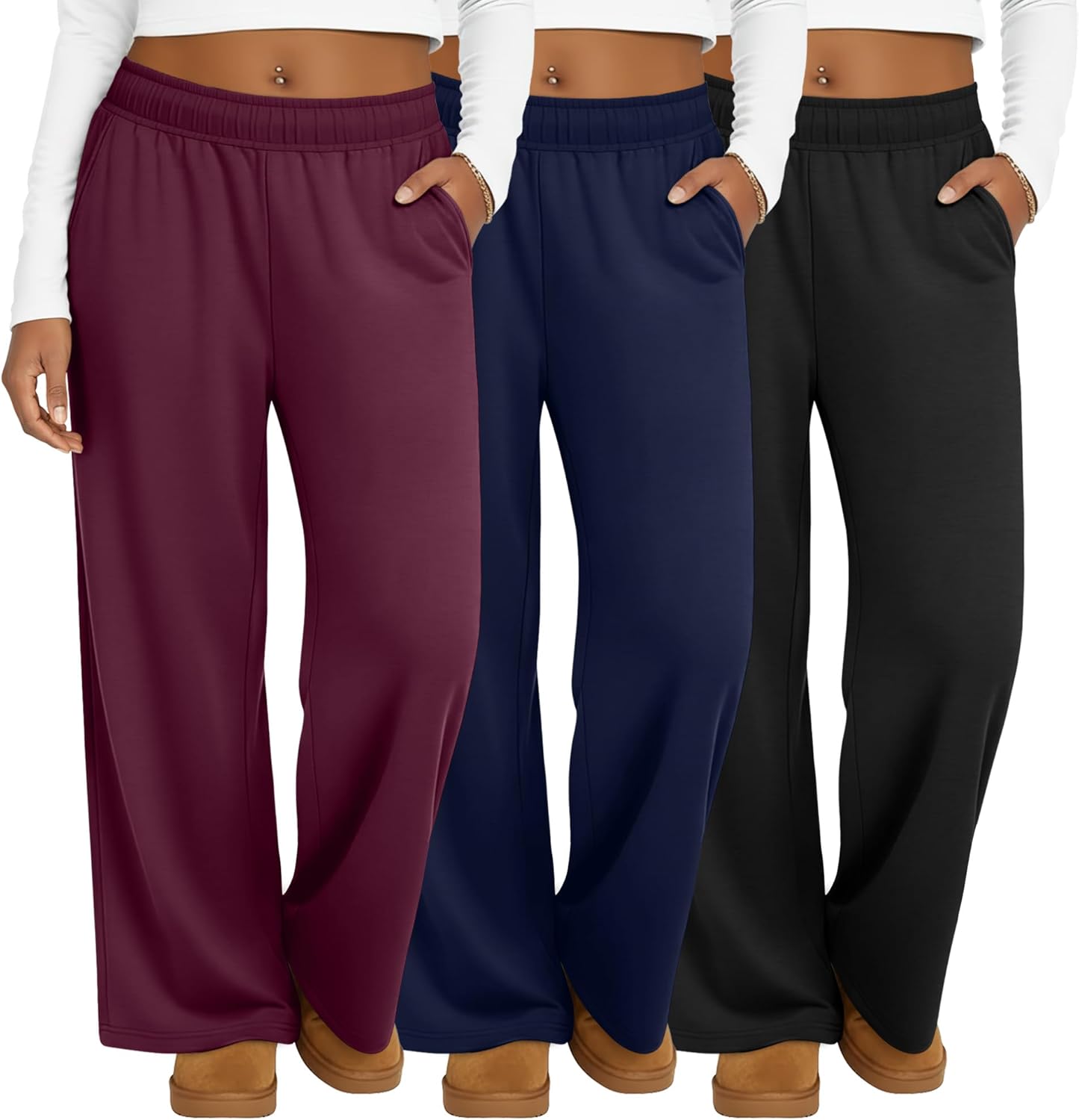 3 Pack Women's Plus Size Sweatpants Casual Wide Leg Interior Drawstring High Waist Yoga Baggy Pants with Pockets