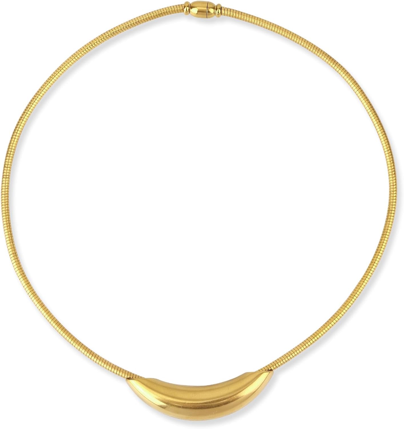Gold Curved Bar Tube Necklace, Stainless Steel Thick Statement Collar for Women Metal Snake Chain Necklaces Chunky Round Tube Jewelry Women Gifts