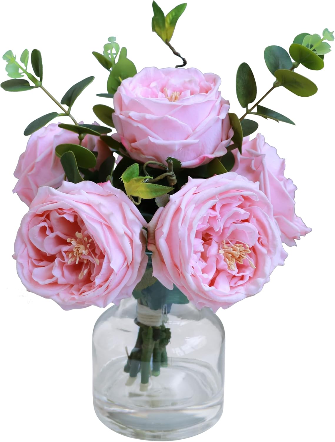 - Ready to Display: Our florists have pre-arranged pink roses with eucalyptus in the vase using fake water. Simply unpack and enjoy - no arranging needed!Flower centerpieces for tables.