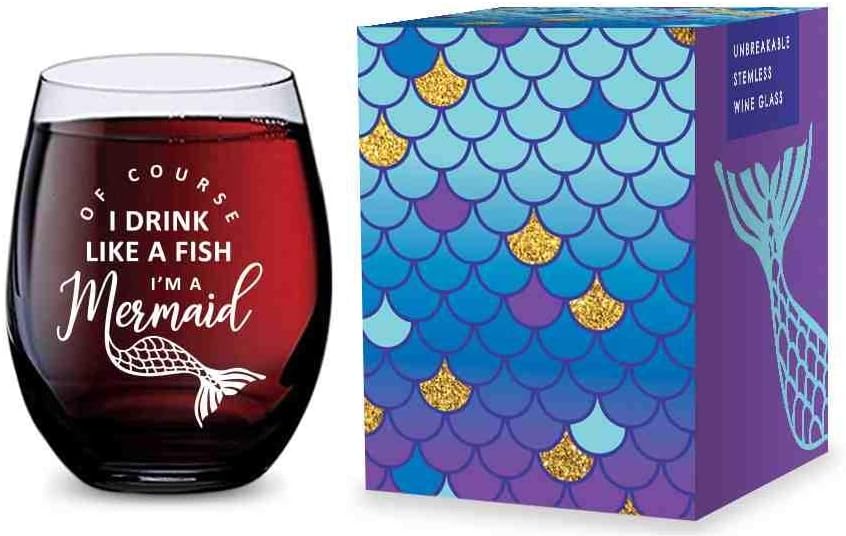 GSM Brands Stemless Wine Glass for Mermaid Gifts - Made of Unbreakable Tritan Plastic - 16 ounces
