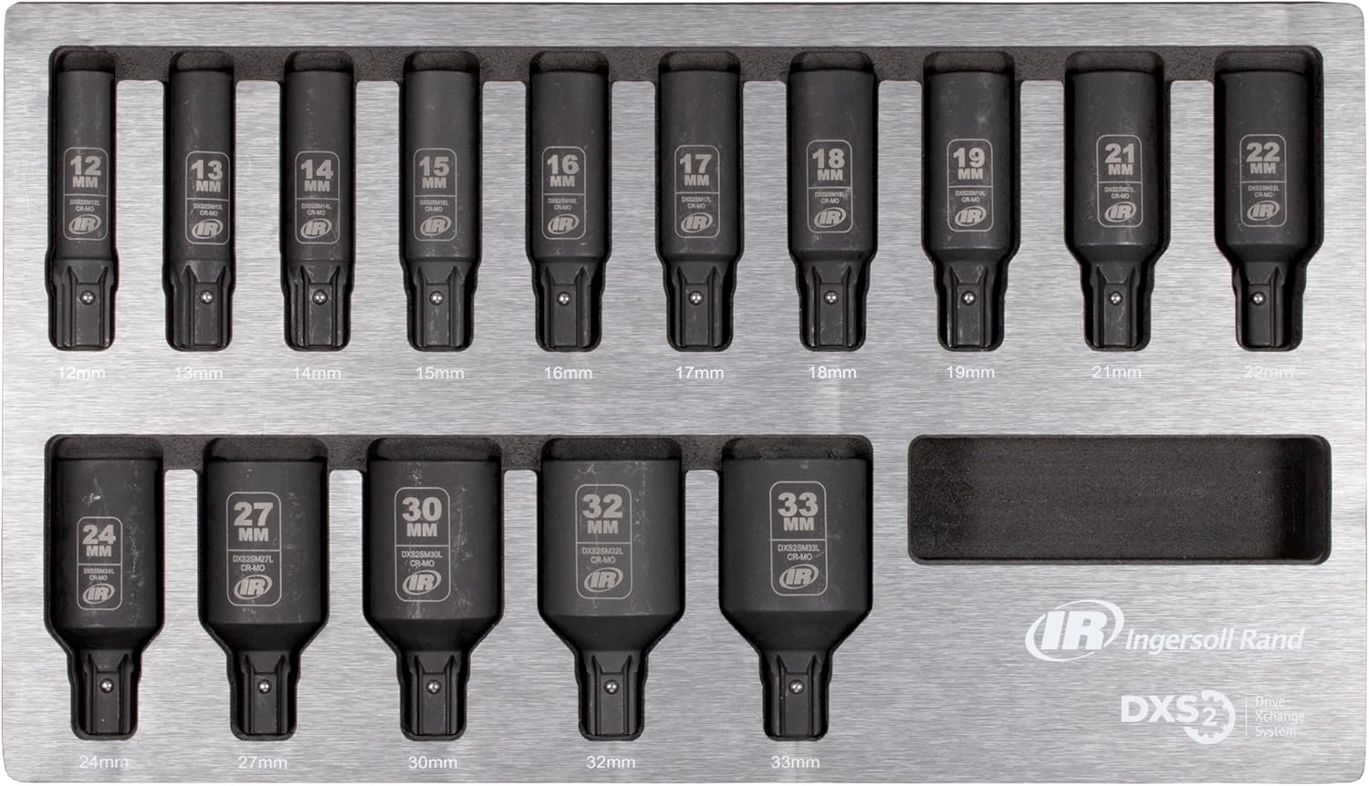 Ingersoll Rand DXSK2M15L DXS2 Drive Hex Deep Metric Impact Socket Set, 15-Piece