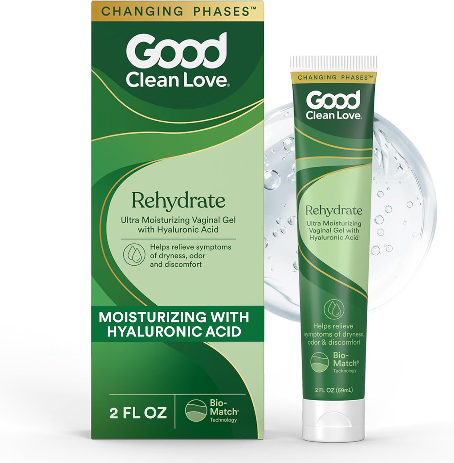 Good Clean Love Rehydrate Ultra Moisturizing Vaginal Gel with Hyaluronic Acid, pH-Balanced Vaginal Moisturizer, Water-Based Feminine Care, Long Lasting Relief from Dryness & Discomfort, 2 Oz