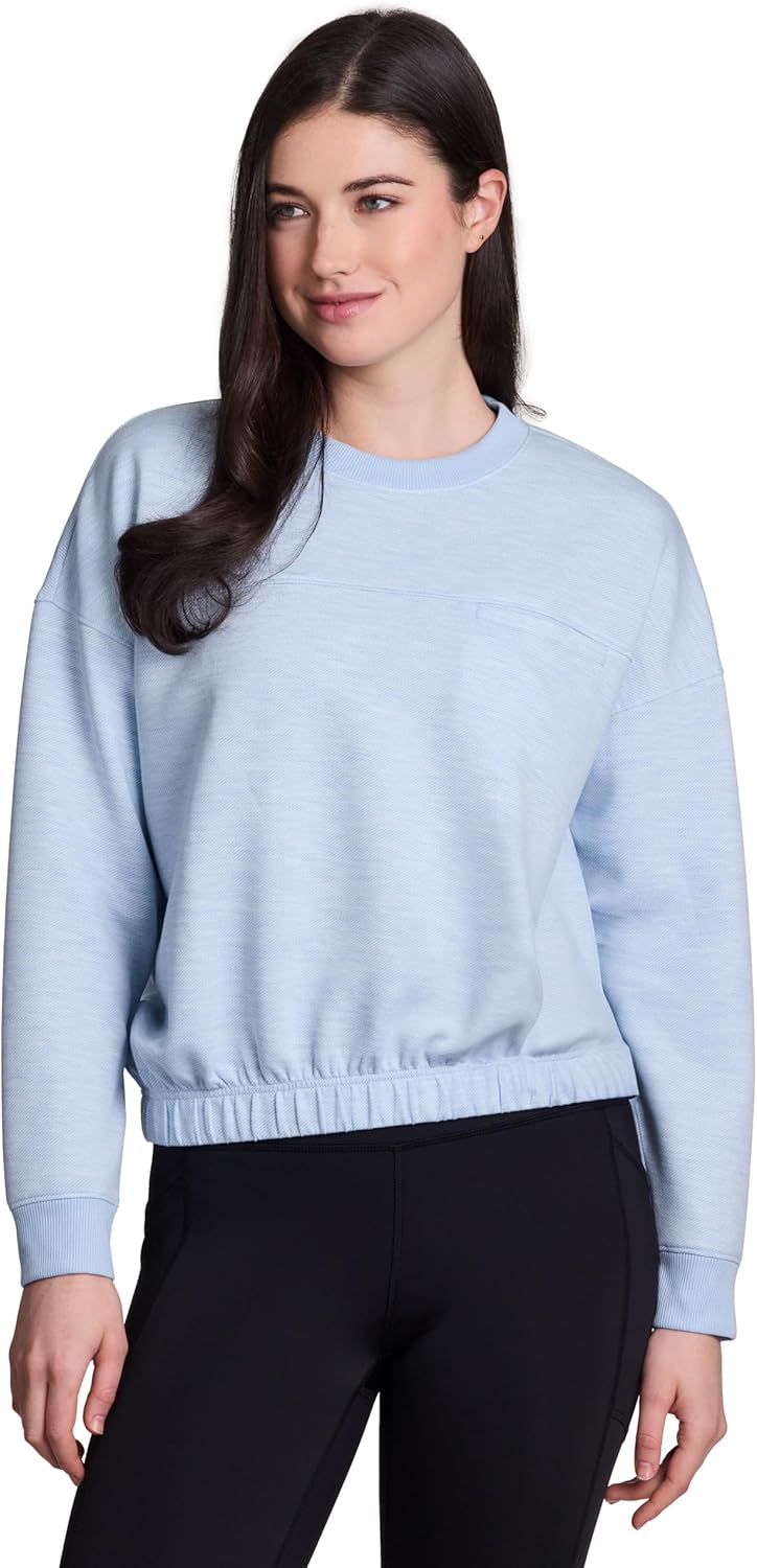 RBX Luxe Athleisure Sweatshirt for Women, Regular Length Banded Hem Lightweight Crewneck Pullover