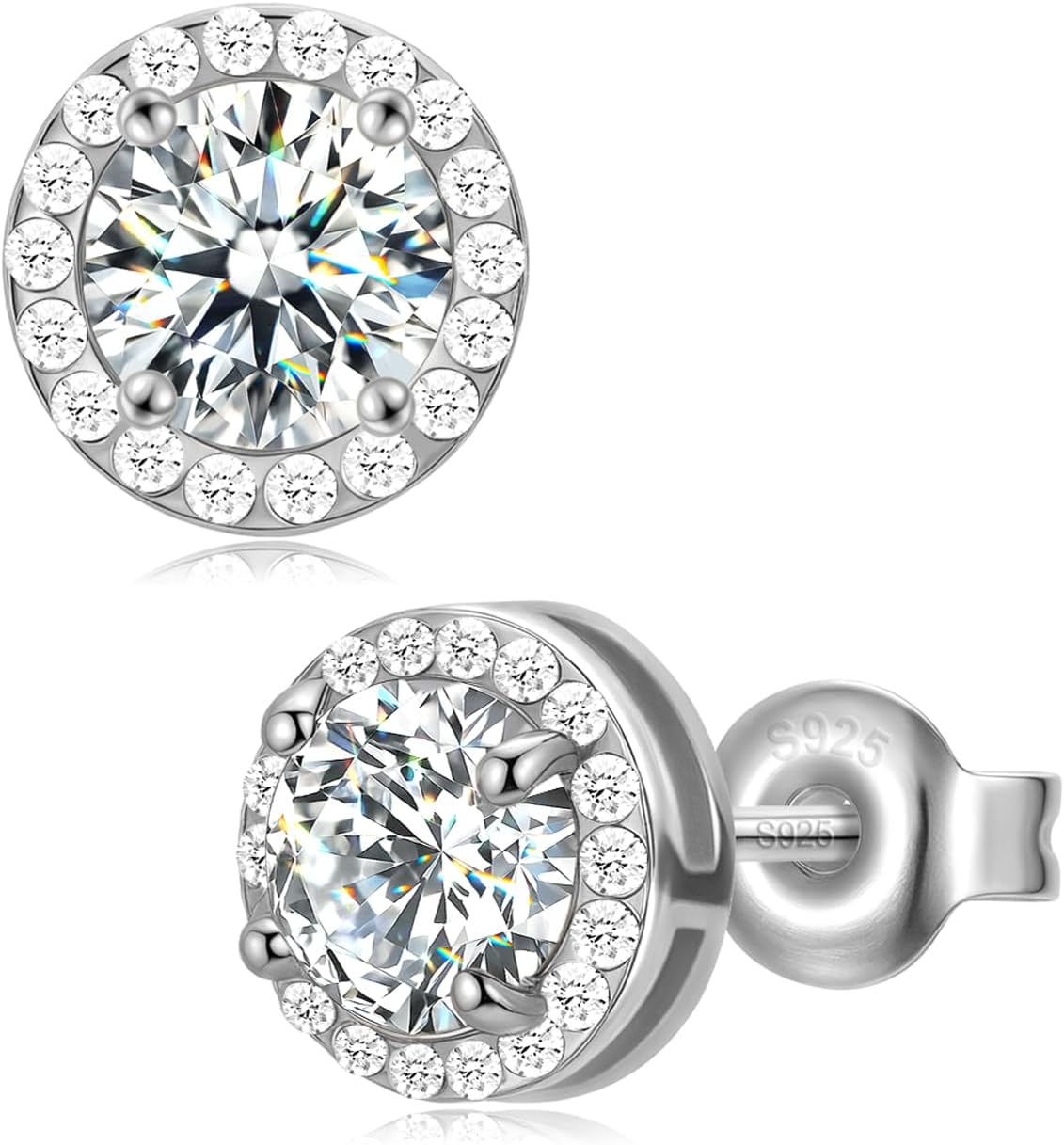 Diamond Halo Earrings for Men Women, 18K White Gold Plated 925 Sterling Silver Moissanite Diamond Studs Hypoallergenic, Birthday Jewelry Valentine Earrings Gifts for Husband Wife Son Daughter Teens