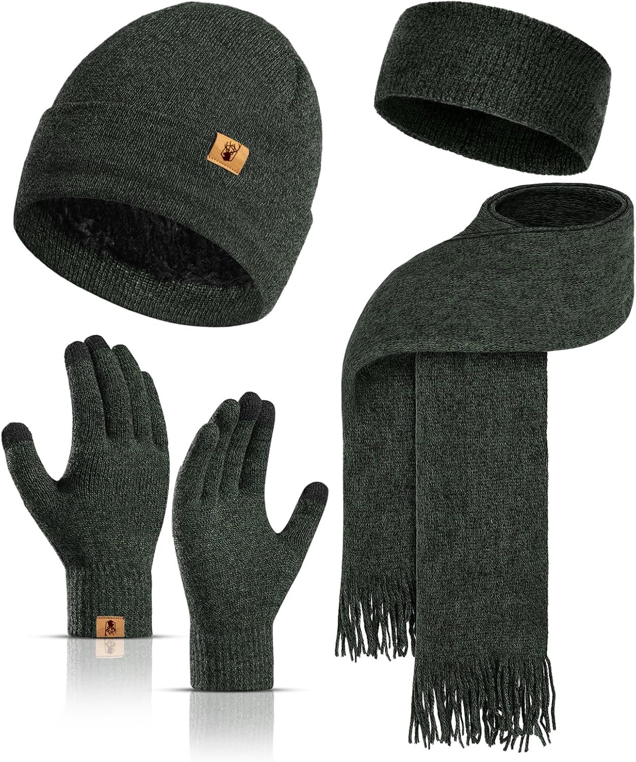 Winter Warm Beanie Hat Touchscreen Gloves Long Scarf Set for Women with Headband, Knit Cap Scarves with Tassel for Women