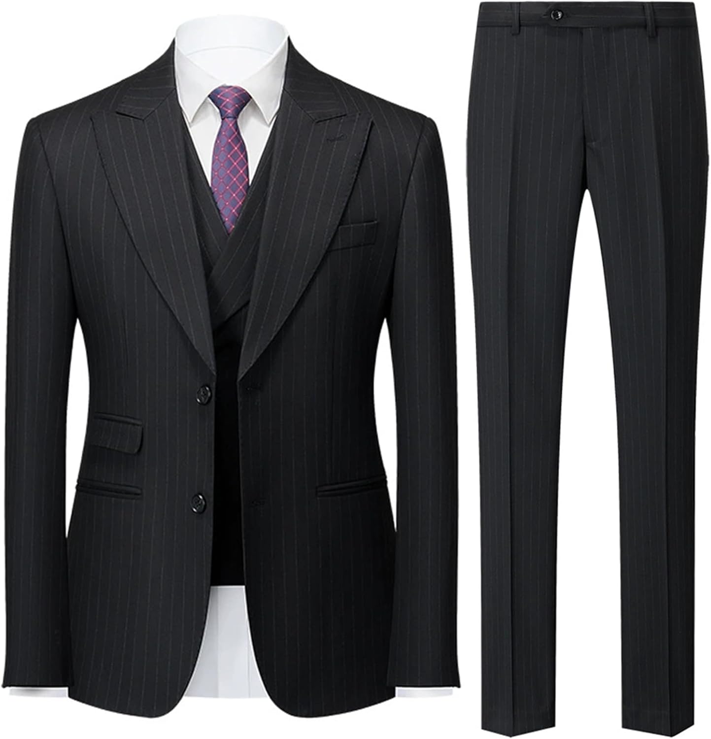 UNINUKOO Mens 3 Piece Suits Pinstripe Slim Fit Peak Lapel Formal Dinner Casual Wedding Tuxedo