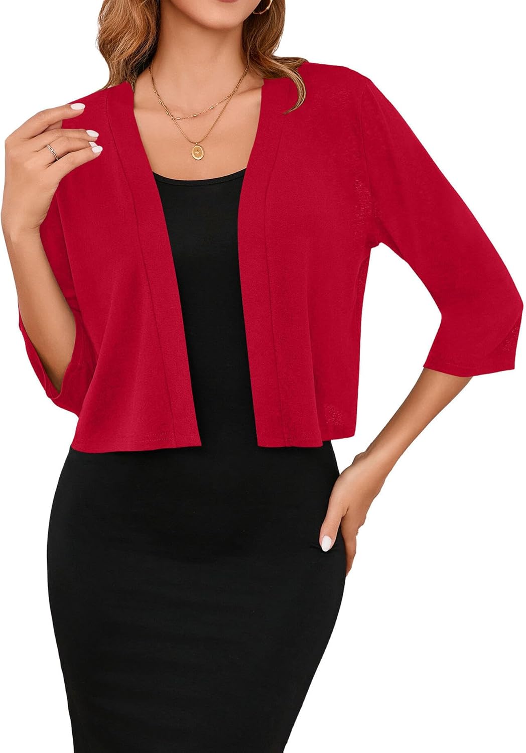 Iandroiy Women's 3/4 Sleeve Shrugs Lightweight Open Front Cropped Cardigan for Women