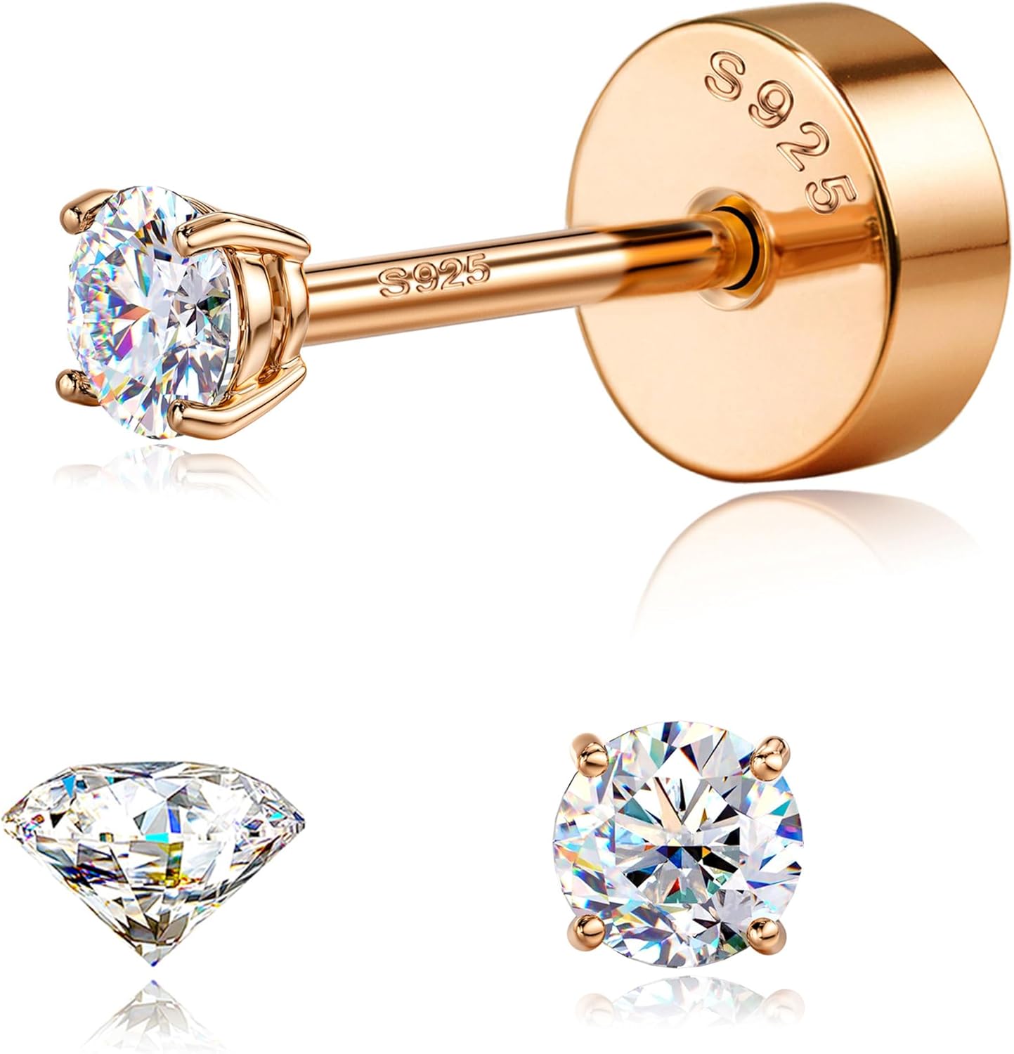 Moissanite Earrings Studs : 18K Gold Plated Solid 925 Sterling Silver Stud Earring for Women Men Hypoallergenic Dainty Moissanite Jewelry for Sensitive Ears Round Cut D Color VVS1 2-7.5mm