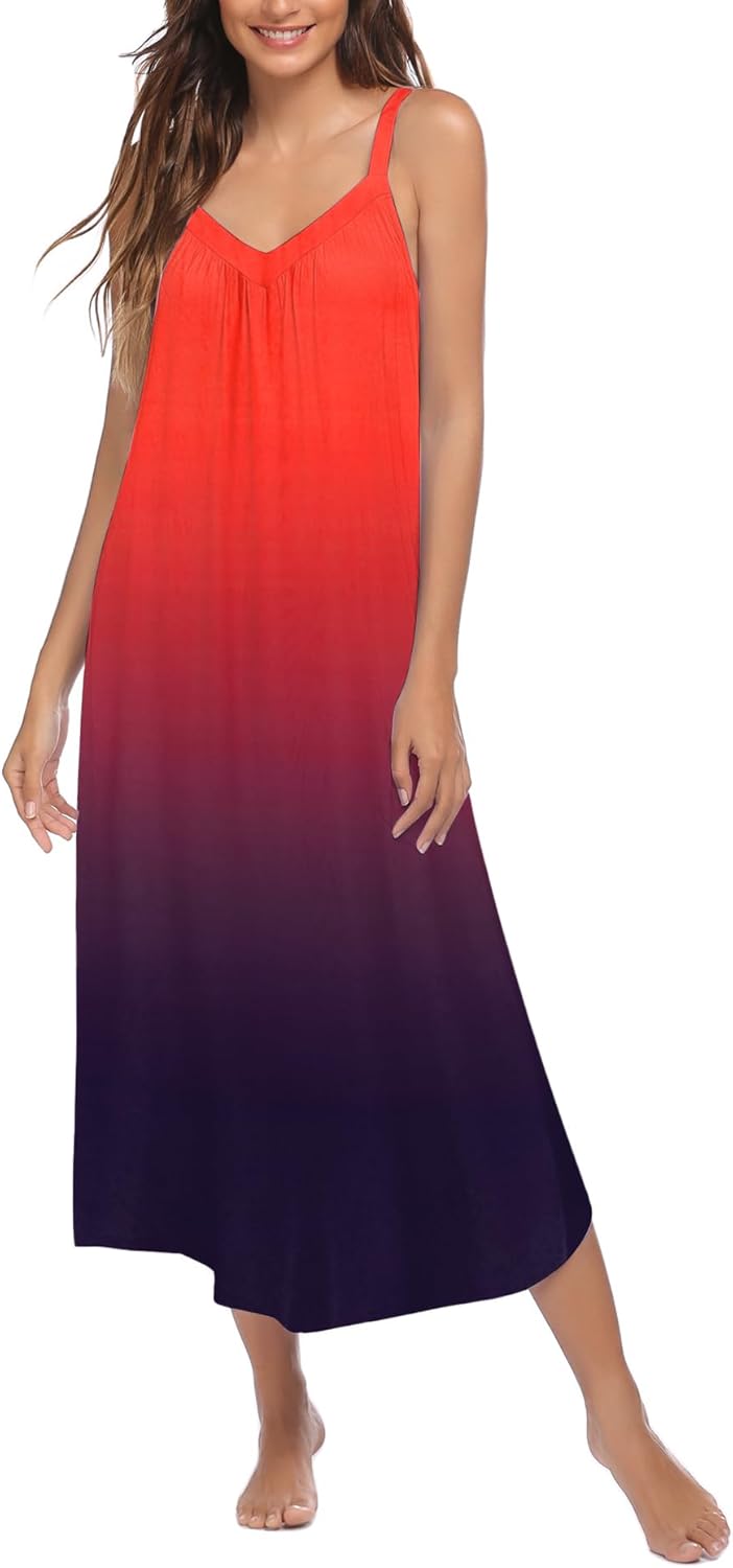 Ekouaer Womens Nightgown Sleeveless Long Night Gown Full Slip Sleep Dress Print Sleepwear Soft Lounge Dress