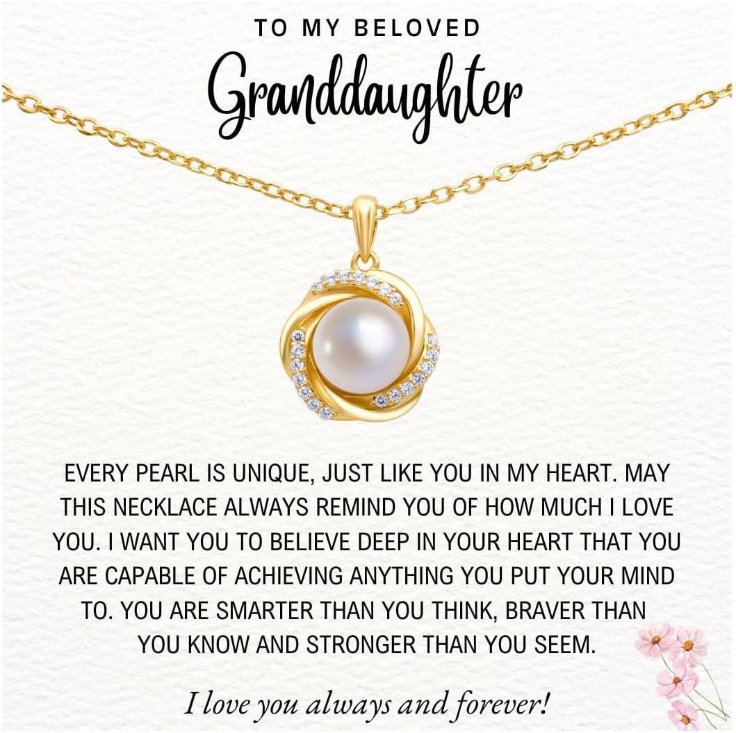 Granddaughter Necklace - Granddaughter Gifts from Grandma, Graduation Gifts for Her, Birthday Inspirational Wedding Jewelry Keepsake Gifts for Granddaughter, Handmade Sterling Silver Pearl Necklace