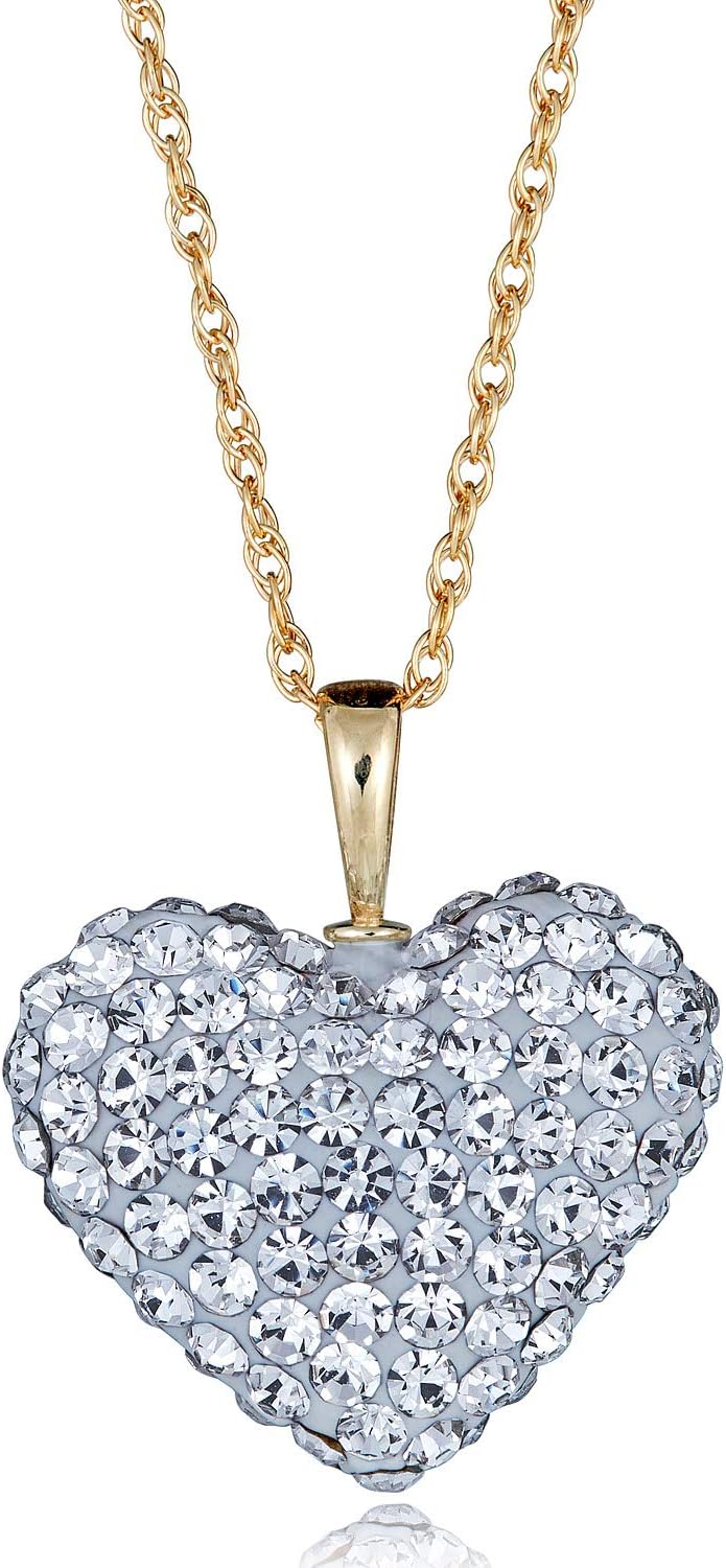AVORA 10K Yellow Gold Crystal Heart Pendant Necklace with 18" Chain