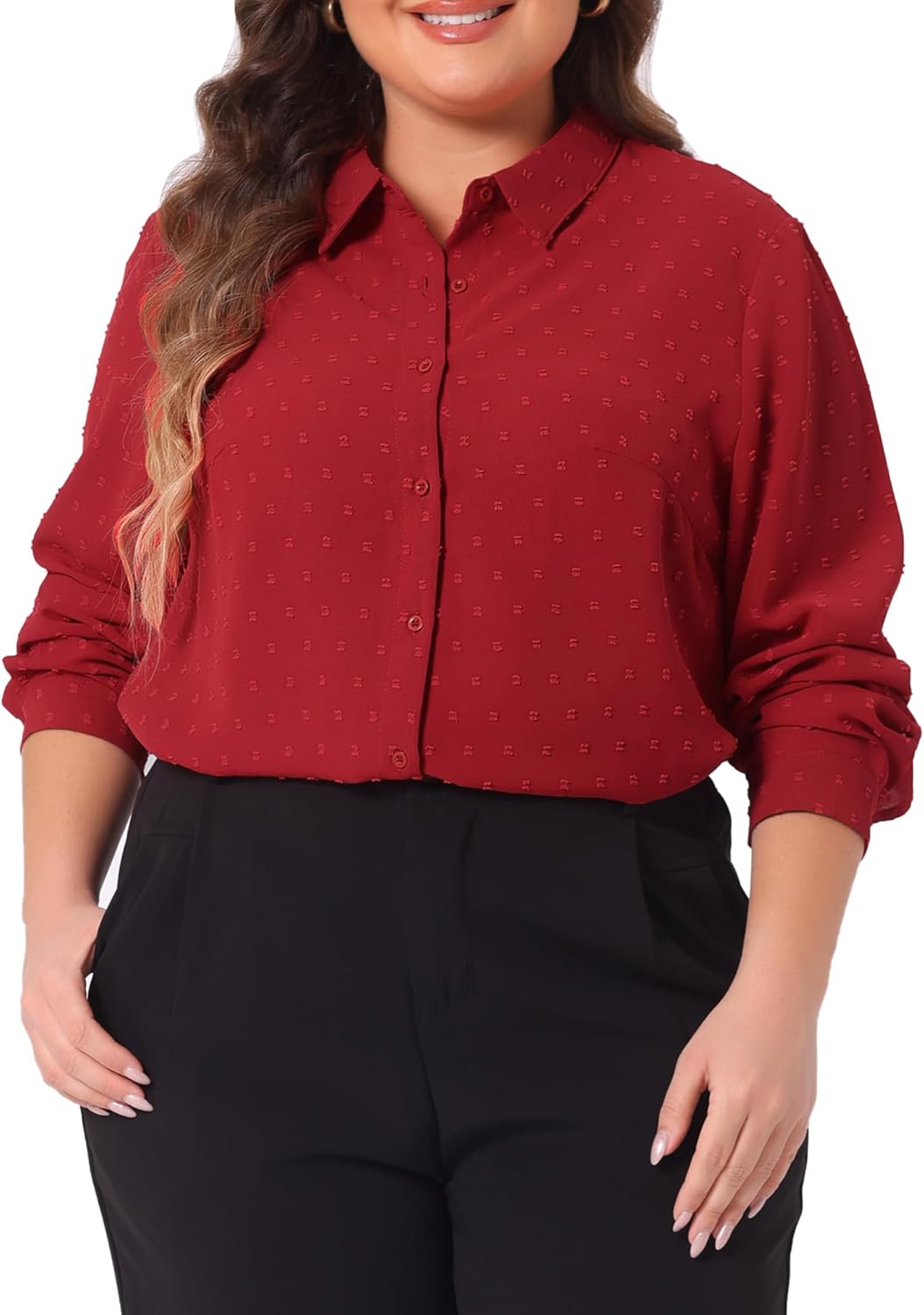 Agnes Orinda Plus Size Swiss Dots Shirt for Women Long Sleeve Button Down Shirts Tops Blouses