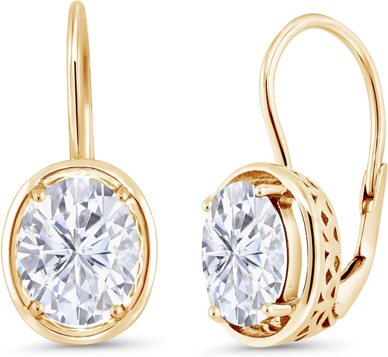 Gem Stone King 4.20 Cttw 18K Yellow Gold Plated Silver Moissanite Dangle Earrings For Women | Oval 9X7MM