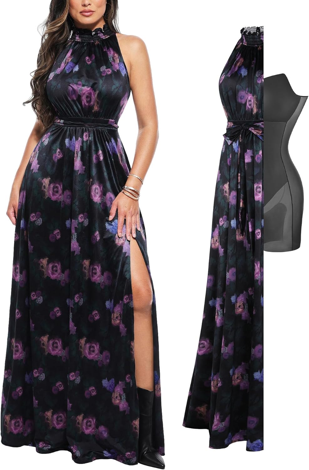 Popilush Wedding Guest Dress Formal Dresses for Women Shapewear Bodycon Long Cocktail Maxi Dresses Fall Halter Flower-Print