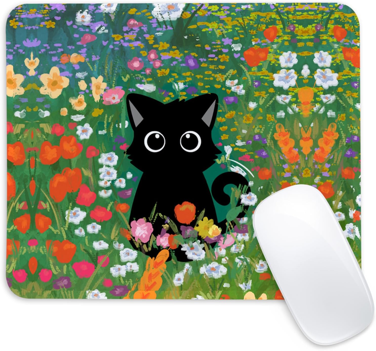 Black Cat Square Mouse Pad,Non-Slip Rubber Base Mouse Pad,Home Office Decoration Desktop Accessory,Laptop Mouse Pad for Office Laptops,9.4x7.8x0.12in
