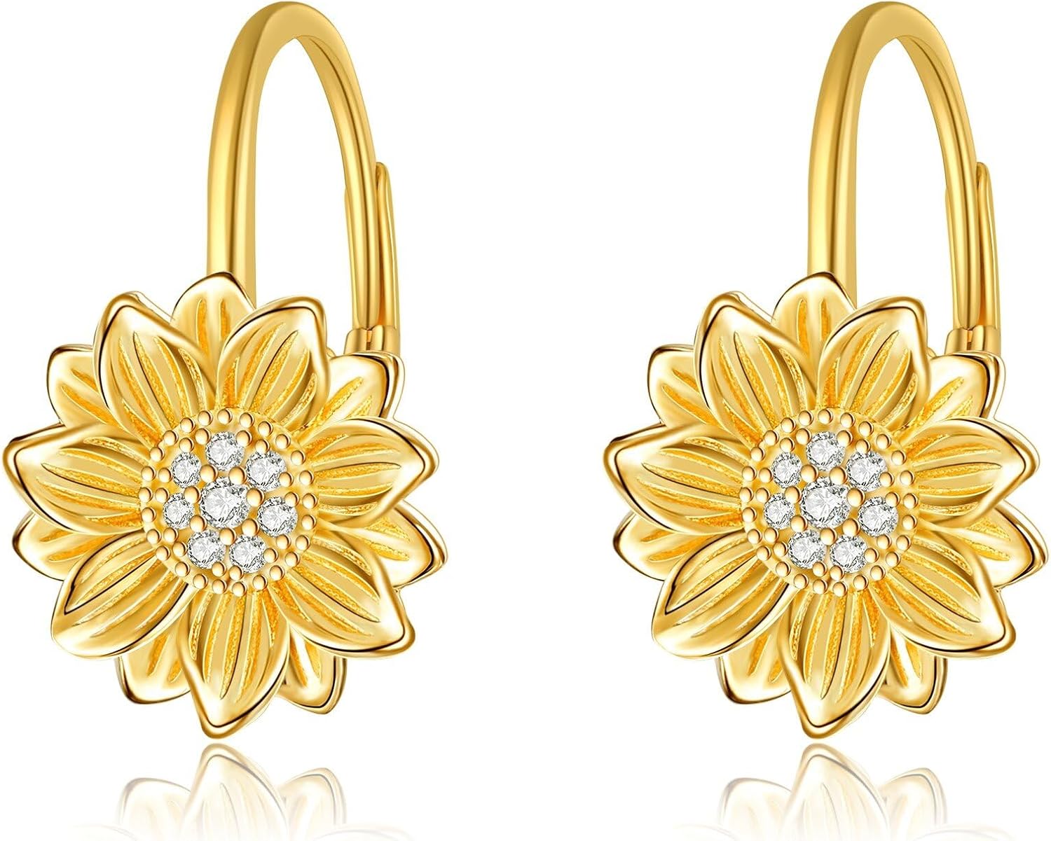 Sunflower Earrings 925 Sterling Silver 18k Gold Plated Sunflower Leverback Earrings Sun Flower Jewelry Gifts For Women Female