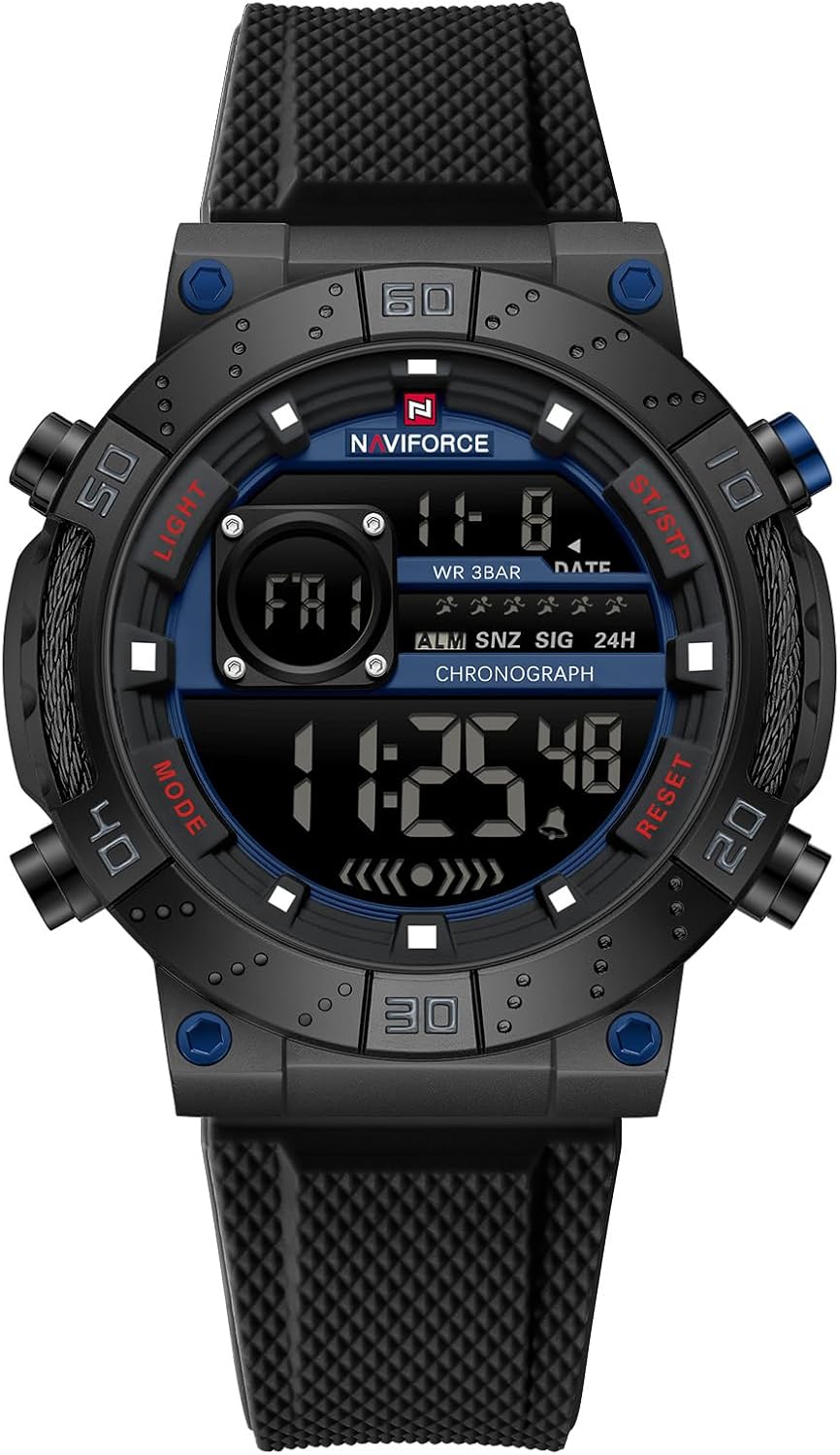 NAVIFORCE Fashion Men Digital Wrist Watch Military Waterproof Sports Chronograph Watches for Men with Alarm/LED Backlight
