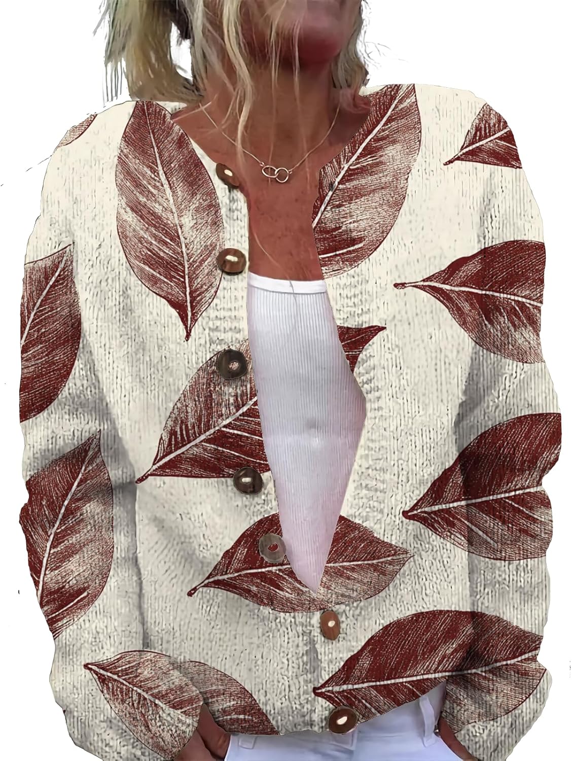 Womens Plus Size Print Cardigan Button Sweater Lightweight Casual Long Sleeve Winter Fall Sweater Tops