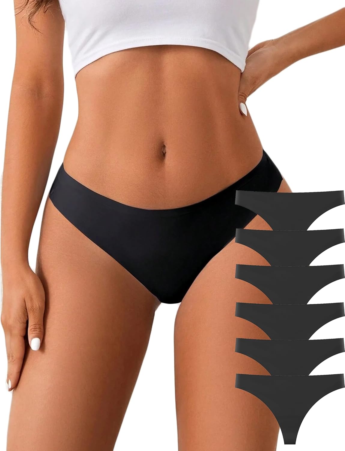 Seamless Thongs For Women No Show Thong Seamless Panties Breathable Comfortable Stretch Underwear Womens 6-Pack
