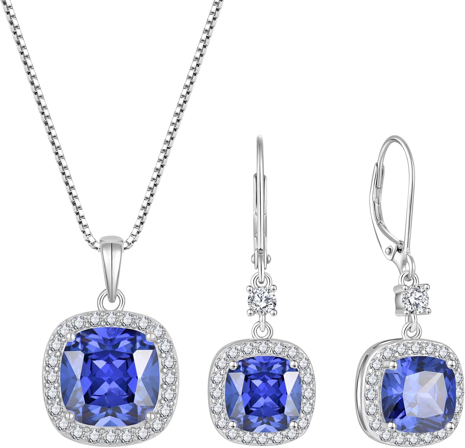 Princess Cut Jewelry Set for Women 925 Sterling Silver Tanzanite December Birthstone Necklace Halo Dangle Drop Leverback Earrings Jewelry Gifts for Her
