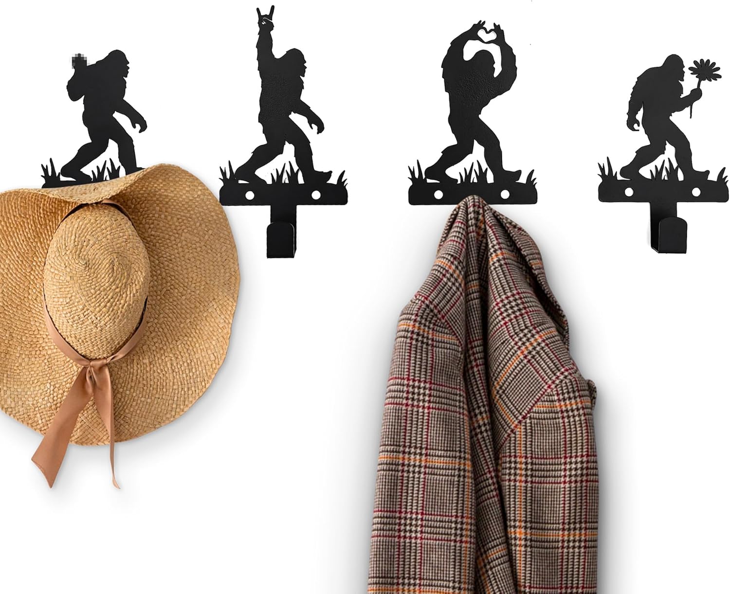 Bigfoot Silhouette Hooks – Set of 4 Unique Designs, Perfect Bigfoot Gifts and Decor, Durable Waterproof Coat Hooks for Living Room and Courtyard