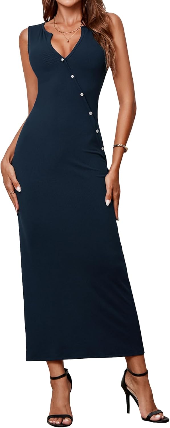 HTZMO Women Fall Knit Casual Long Dress Sexy V Neck Bodycon Wedding Guest Elegant Maxi Dresses
