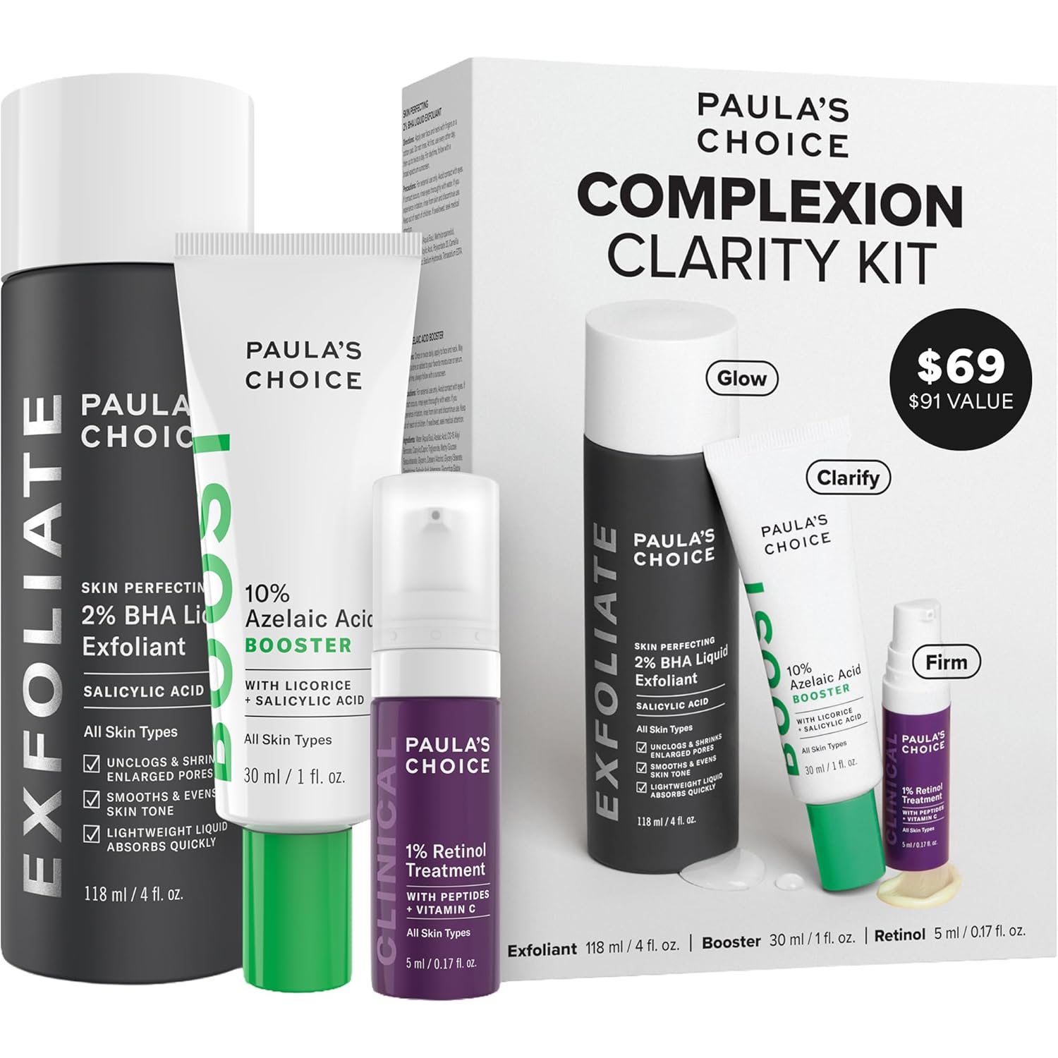Paula's Choice Complexion Clarity Kit, 3 Piece Set Includes Full-Sized 2% BHA Exfoliant, 1% Retinol Treatment, Full-Sized 10% Azelaic Acid Booster, Skin Care Set for Clear, Glowing Skin