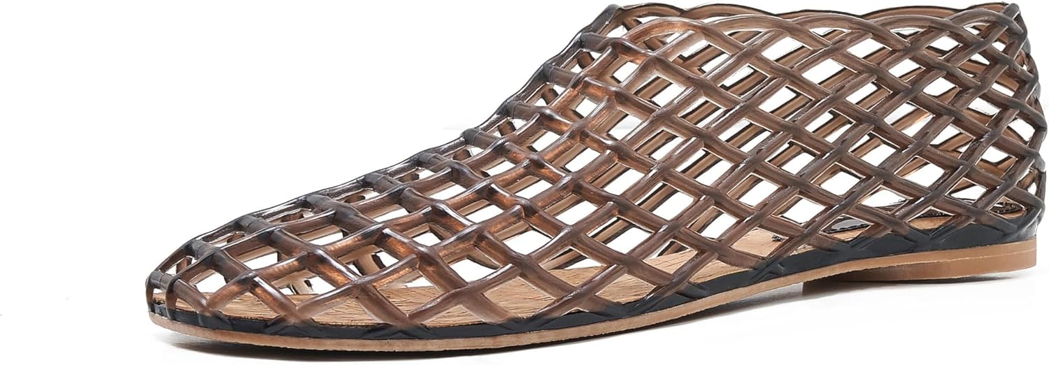 Womens Clear Jelly Mesh Flats Trendy Transparent Shoes Soft Cork Insole Lightweight Casual Summer Shoes for Daily Outfits