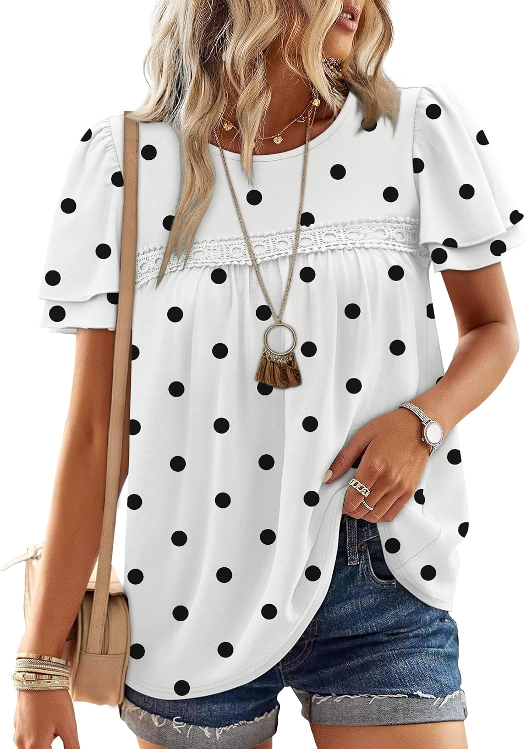 OFEEFAN Blouses for Women Dressy Casual Peplum Babydoll Tops Ruffle Short Sleeve Shirts Plus Size Fashion Clothing