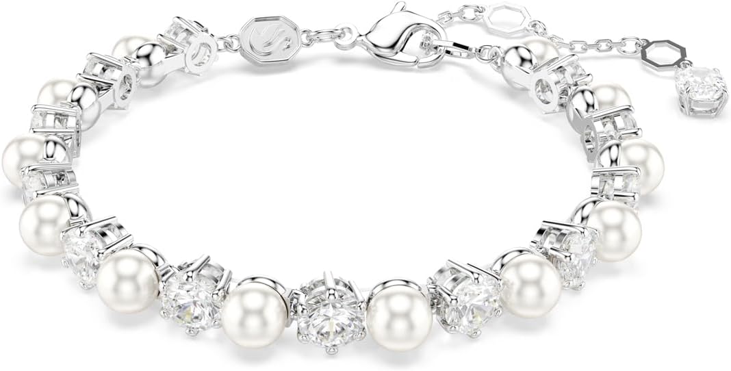 Swarovski Matrix Tennis bracelet, Crystal pearl, Round cut, clear, Rhodium finish