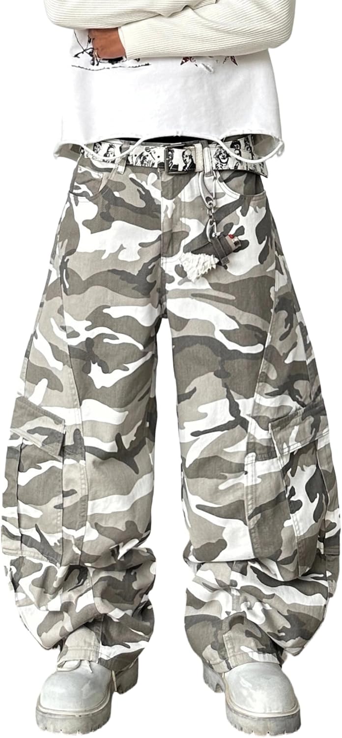 Mens Baggy Jeans Camouflage Loose Cargo Pants Hip Hop Wide Leg Trousers Mid Waist Skater Jeans
