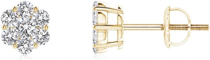 Small Yellow Gold Plated 925 Sterling Silver Screw Back Post Iced Cz Mens Women's Tiny Cute Cubic Zirconia Hypoallergenic Flower Cluster Stud Earrings