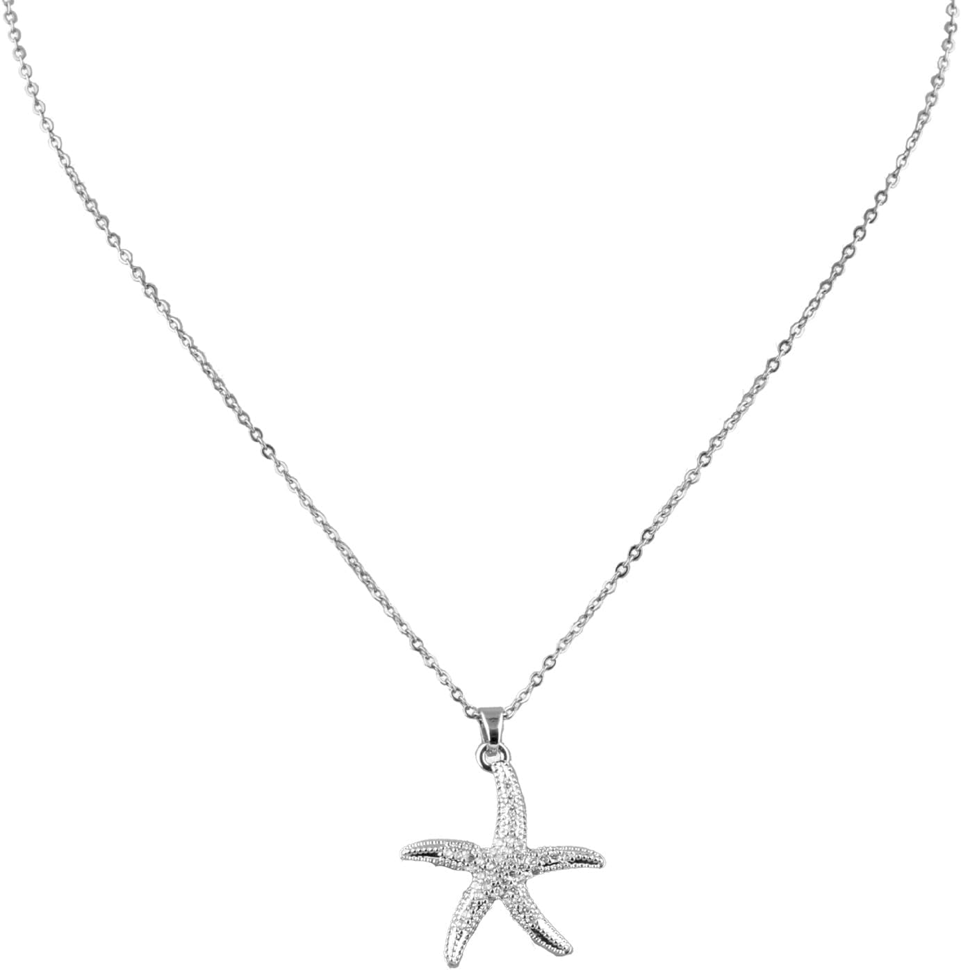 Starfish Charm Necklace for Women, Titanium Steel Starfish Pendant Necklace Stylish Beach Jewelry Gift Summer Sea-Inspired Necklaces Star Fish Jewellery for Women (Silver)