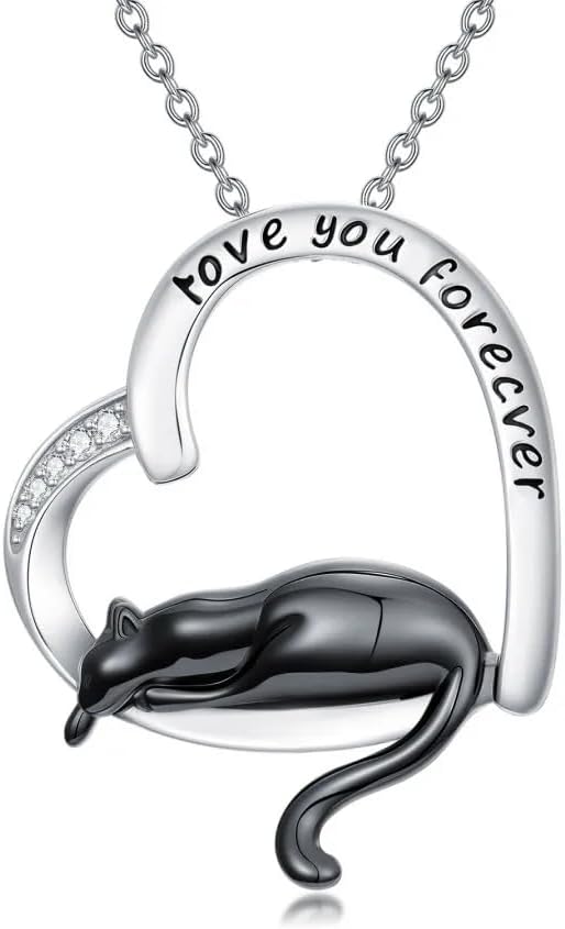 Diamond Black Cat Necklace for Women S925 Sterling Silver Heart Lab Grown Diamond Black Cat Necklace Gift for Mom Her