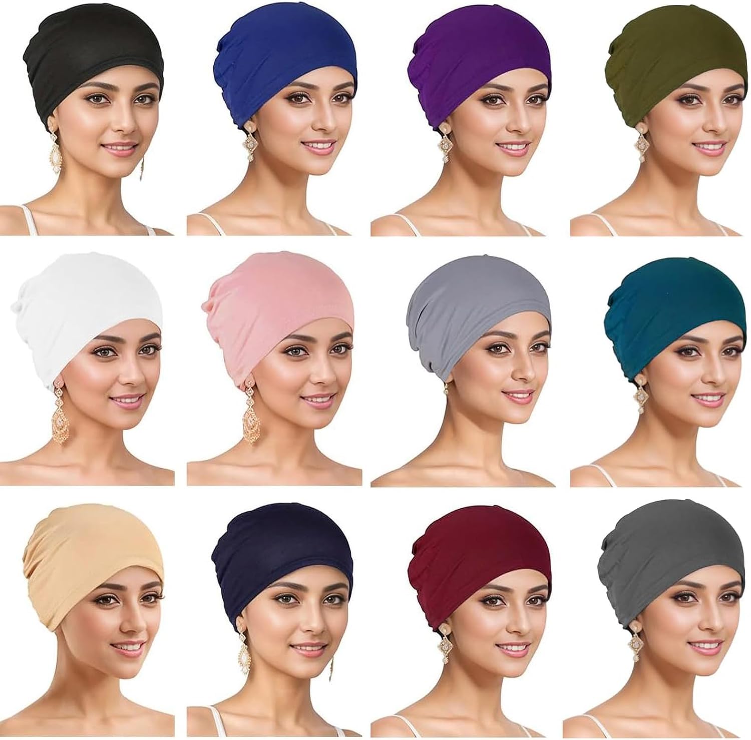 9 Pieces Solid Women Chemo Hat Stretchy Turban Beanie,Pre Tied Chemo Head Scarf Beanie Skull Cover Cap for Women Hair Loss