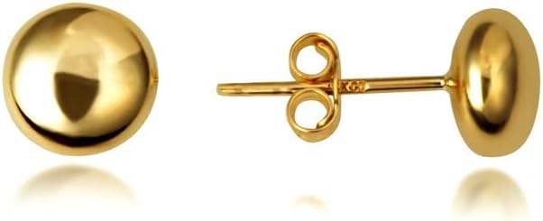 Flat Ball Stud Stud Earrings Real Solid 14K Yellow Gold
