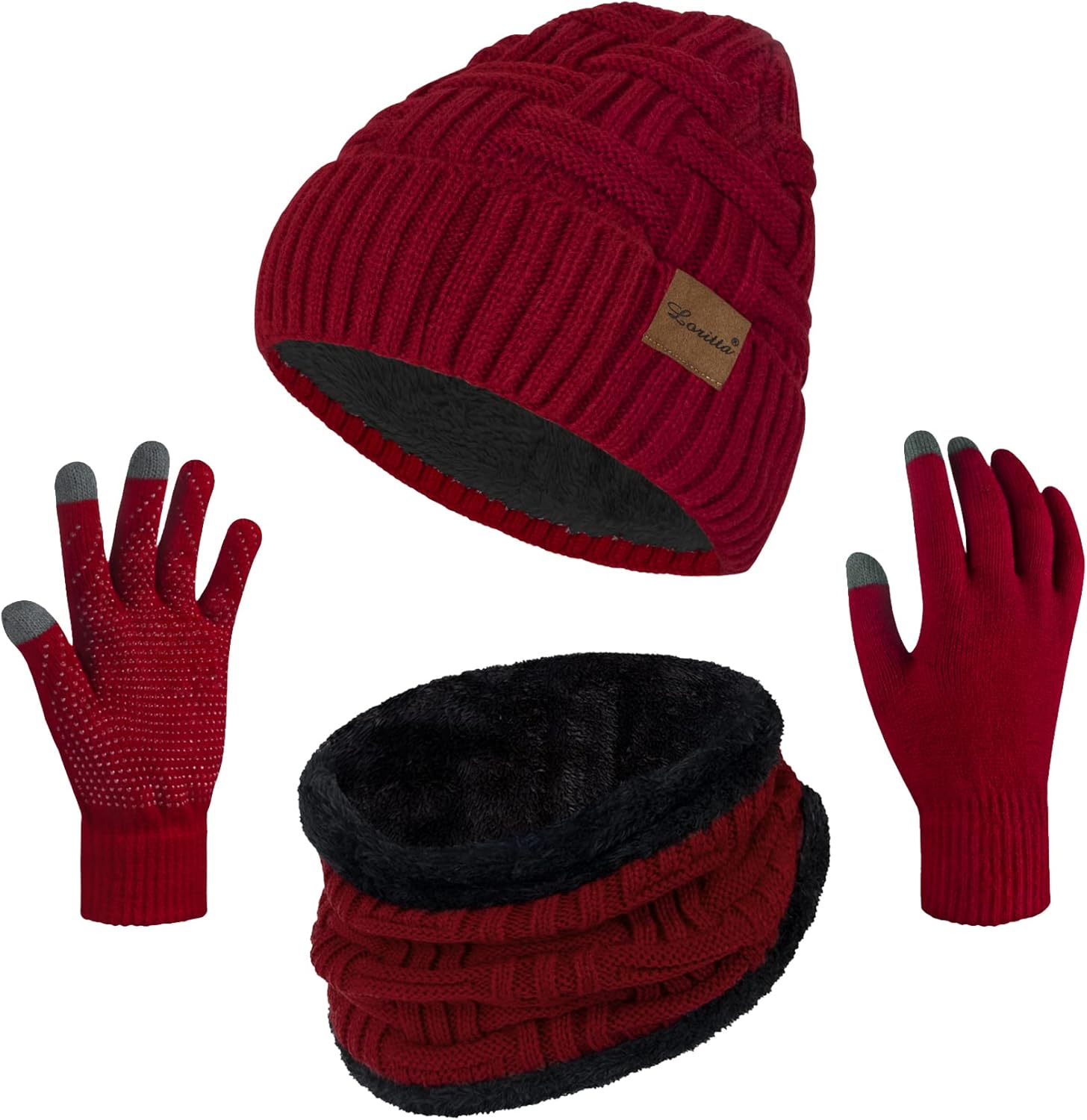 Loritta 3-Pieces Winter Hat Neck Warmer Touchscreen Gloves Set Knit Thick Scarf Beanie Hats Scarves Set Gifts for Women