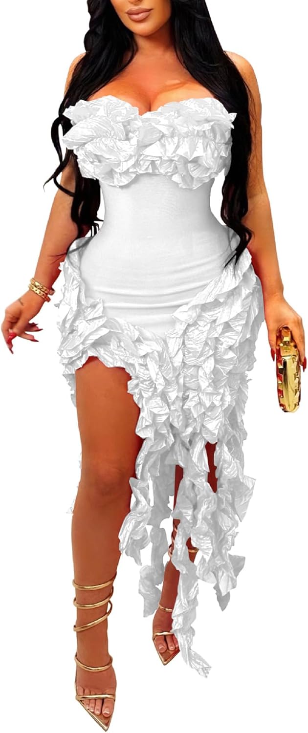 DINGANG Womens Dresses Sexy Off The Shoulder Corset Slit Summer Y2K Dress Club Party Long Dress