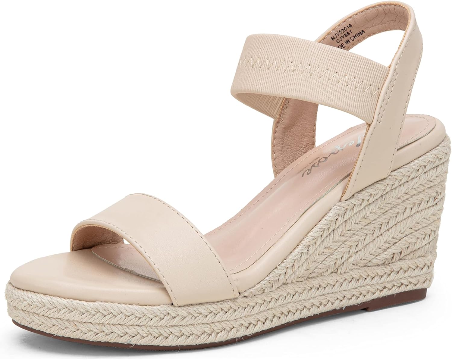 Vepose Women's Wedge Sandals, Platform Espadrilles Sandal Slip On Open Toe with Ankle Strap, Comfortable Low Heel Summer Dressy 881 Shoes