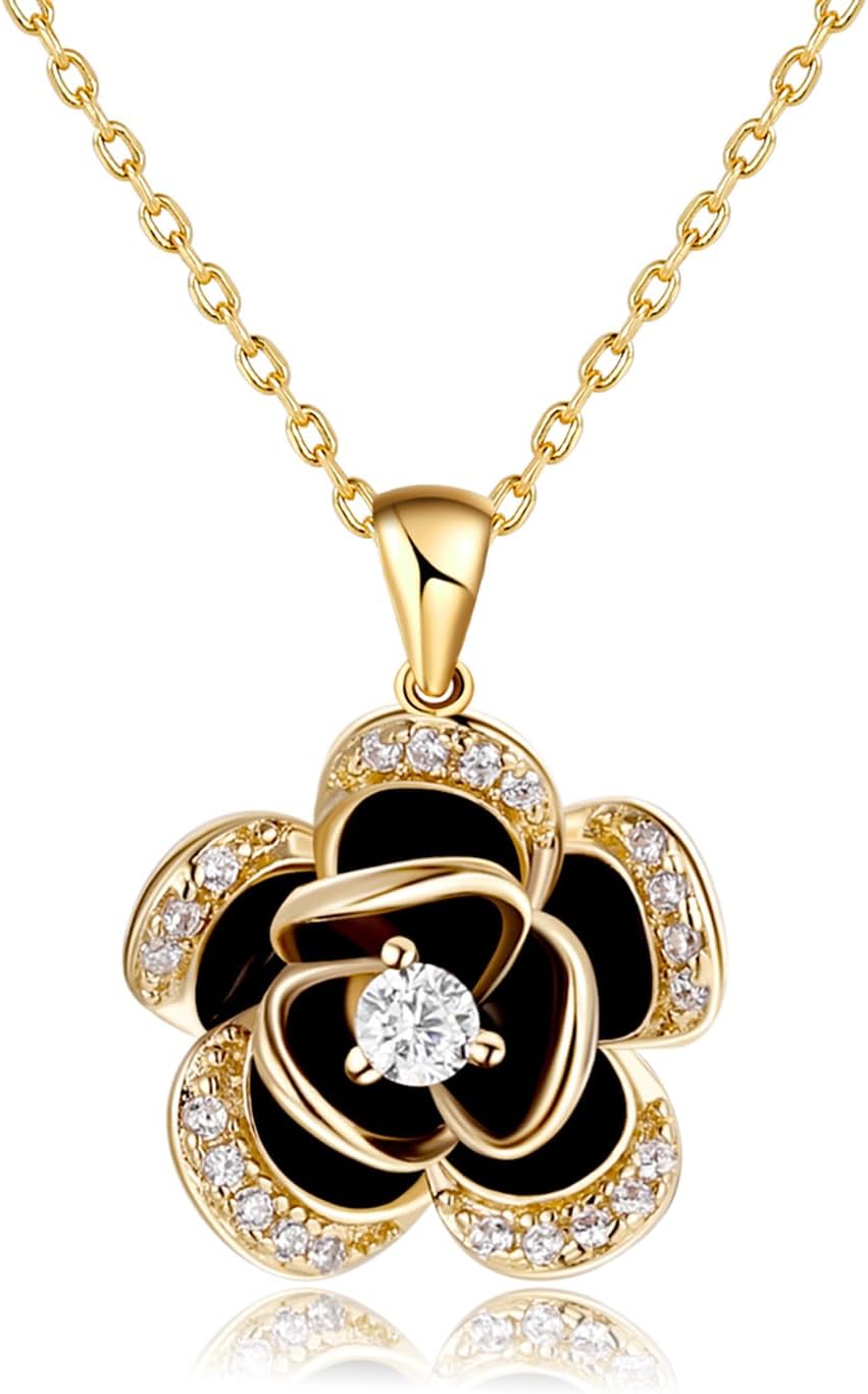 14K Gold Rose Flower Necklace For Women Sterling Silver Dainty Rose Gold Flower Pendant Necklaces Cute Gifts For Her Birthday wedding Anniversary Valentines Day