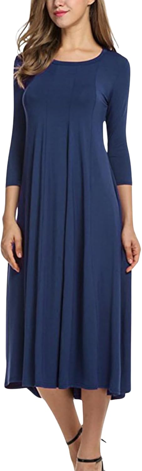 Women's 3/4 Sleeve Midi Dress Basic Casual Round Neck Solid Comfortable Summer Dresses for Women