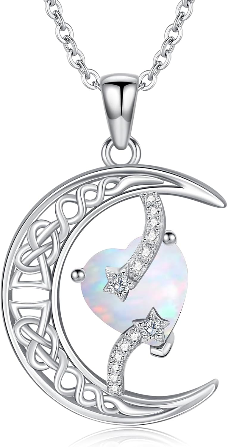 TOUPOP Moon and Star Birthstone Necklace for Women 925 Sterling Silver Celtic Moon Jewelry Anniversary Birthday Gifts for Her Wife Mom