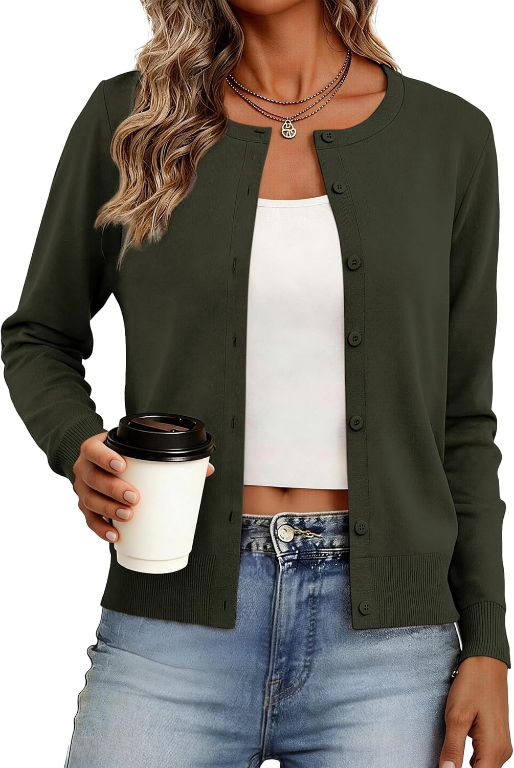 Women's Cardigan Sweaters Lightweight Crew Neck Button Down Long Sleeve Spring Outfits Fashion Clothing 2026