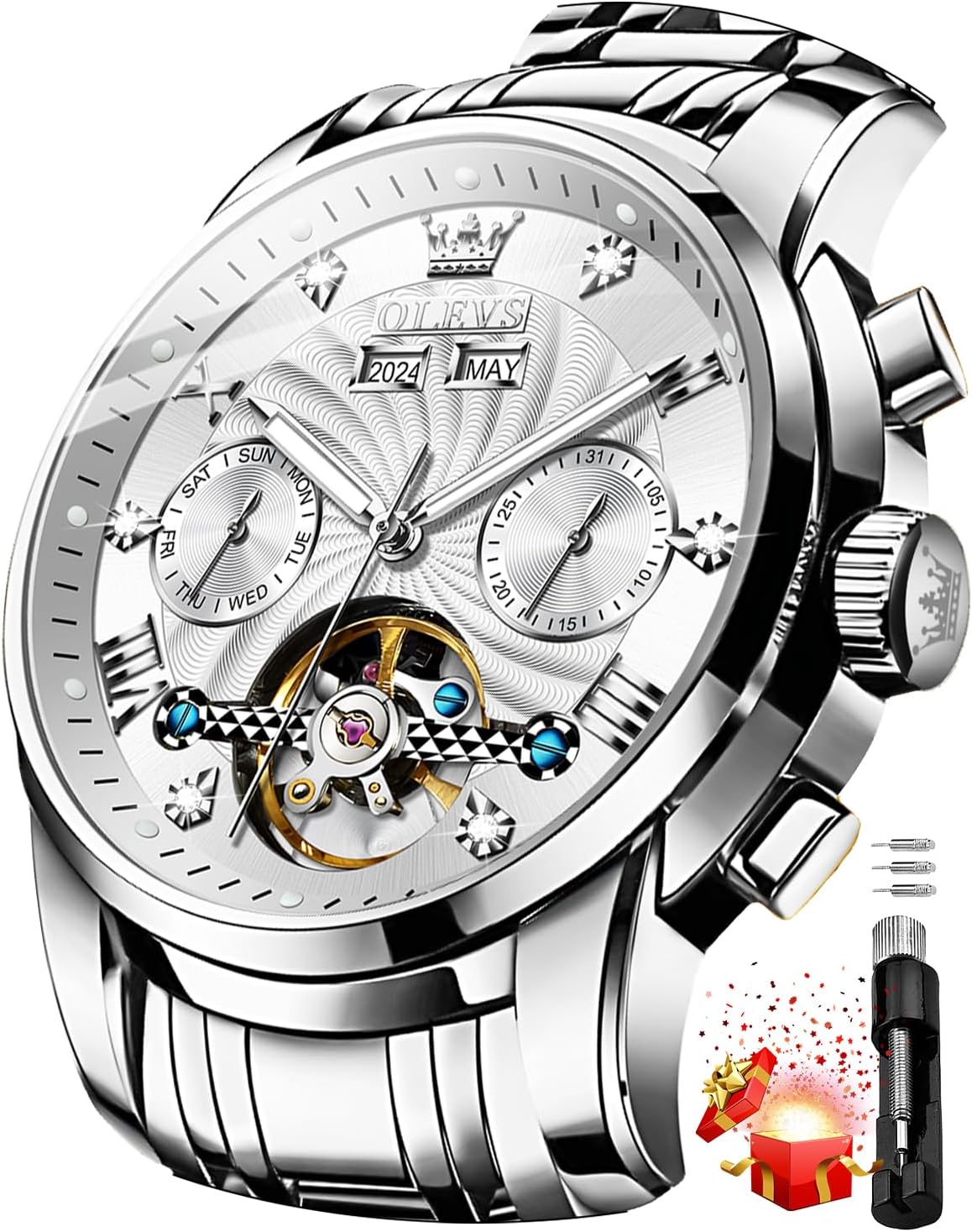 OLEVS Watch for Men Automatic Mechanical Luxury Dress Tourbillon Stainless Steel Waterproof Wrist Watches Date